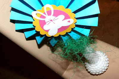 Glue a bamboo skewer to the back side of your flower. If you want to cover the skewer you can wrap it in any form of ribbon. I used green raffia for the ones seen in Avery's party.